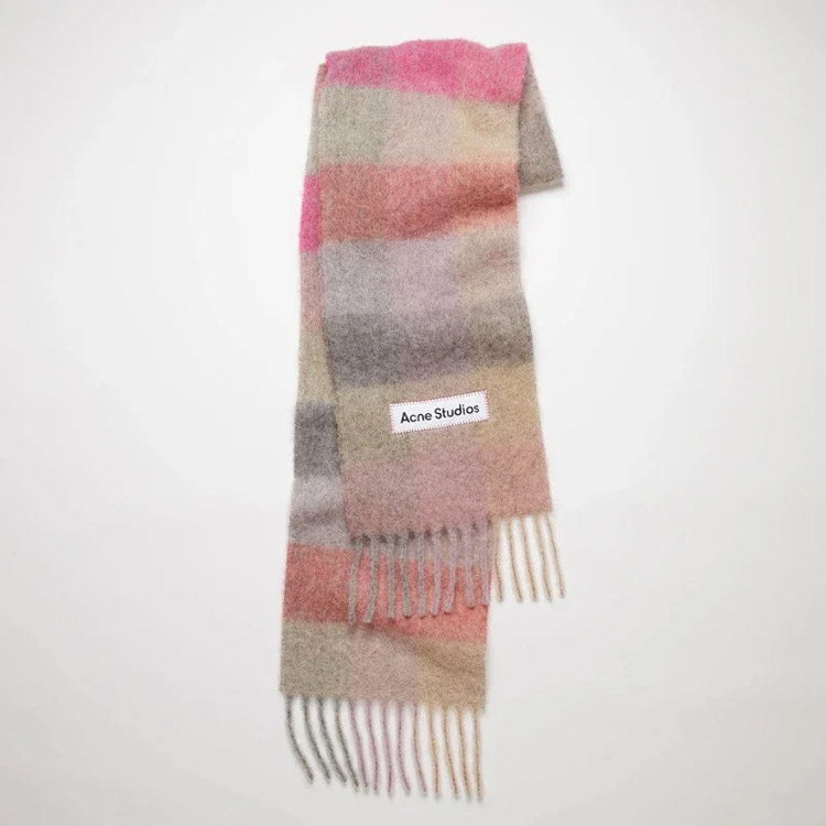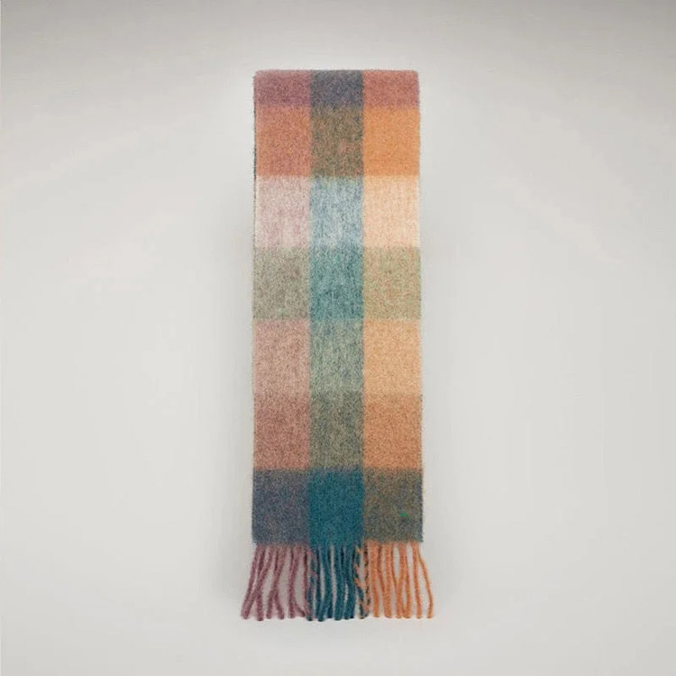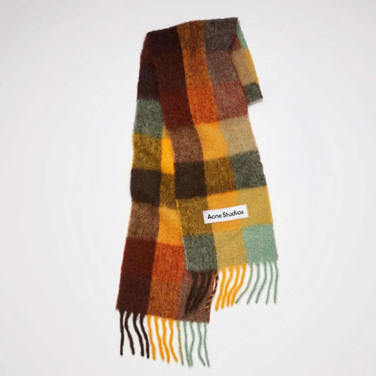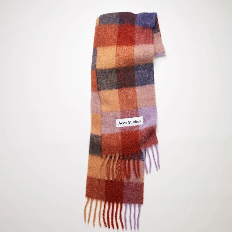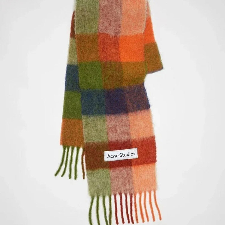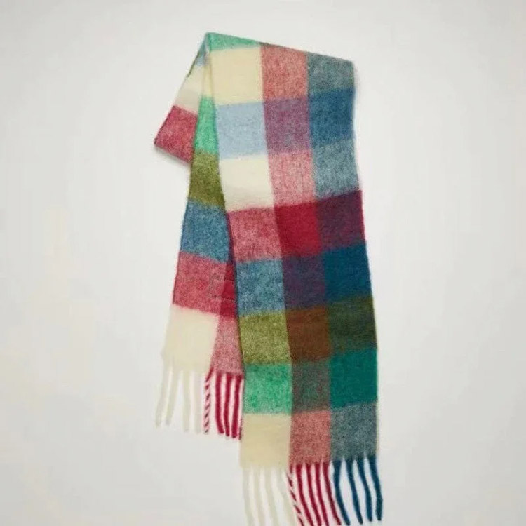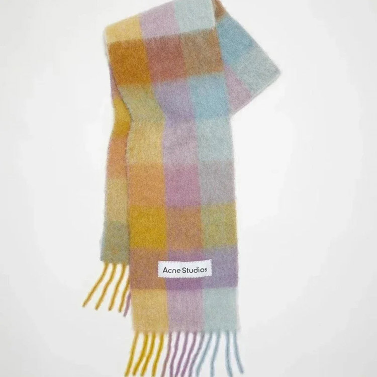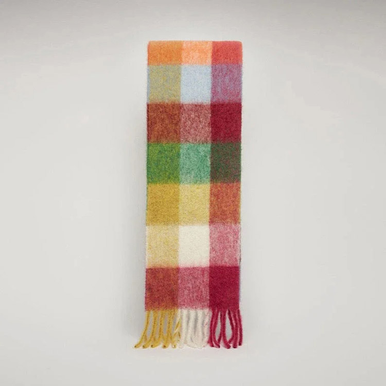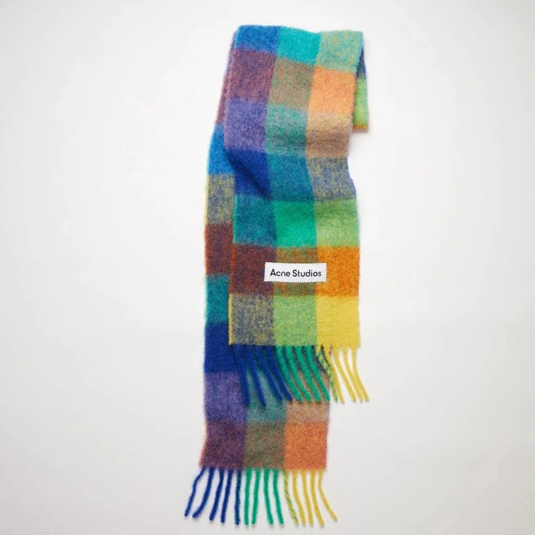 ACNE rainbow plaid scarf with tassels and color-blocked AC shawl-4981
