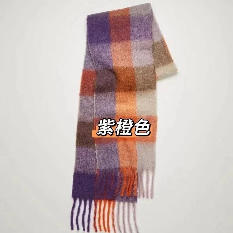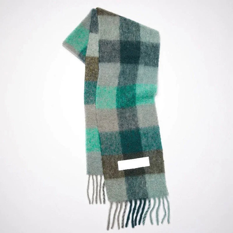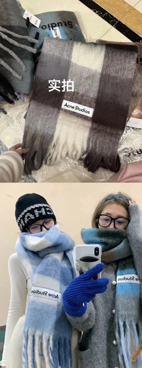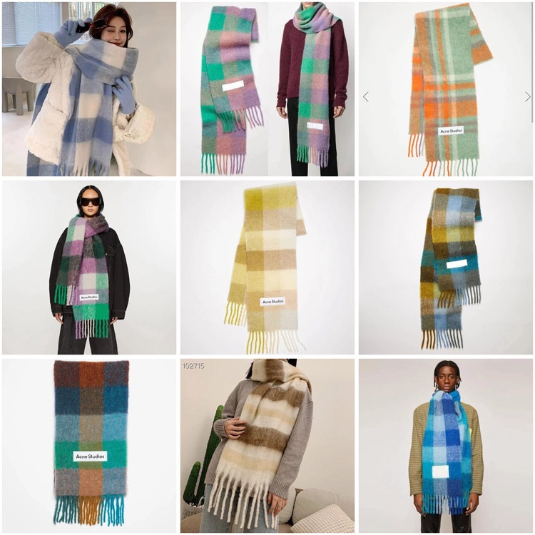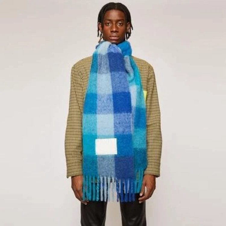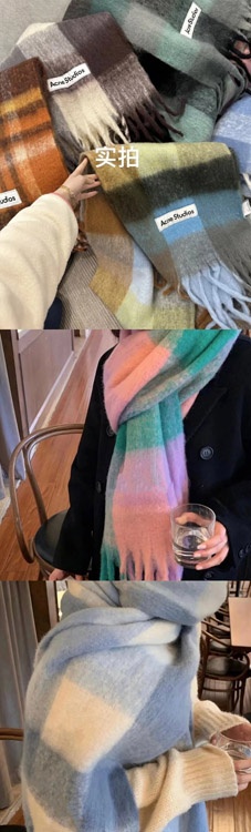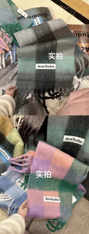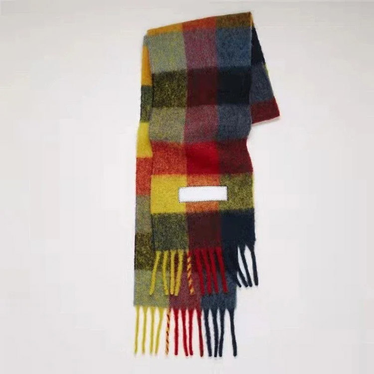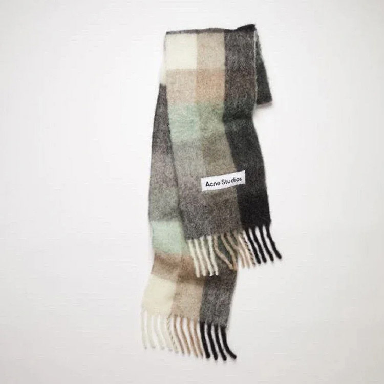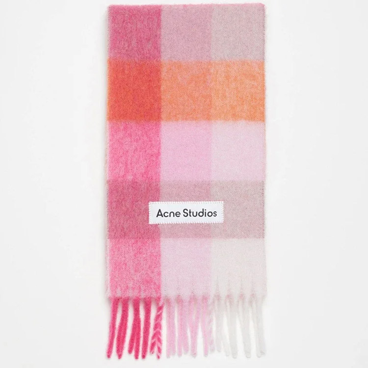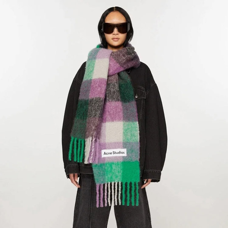 ACNE rainbow plaid scarf with tassels and color-blocked AC shawl-4981