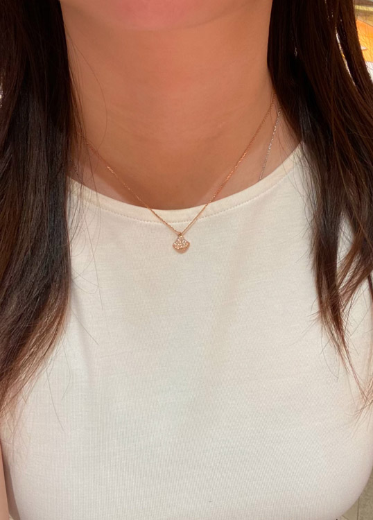 Bulgari small fan white mother-of-pearl rose gold half diamond full diamond necklace-3853