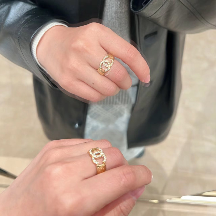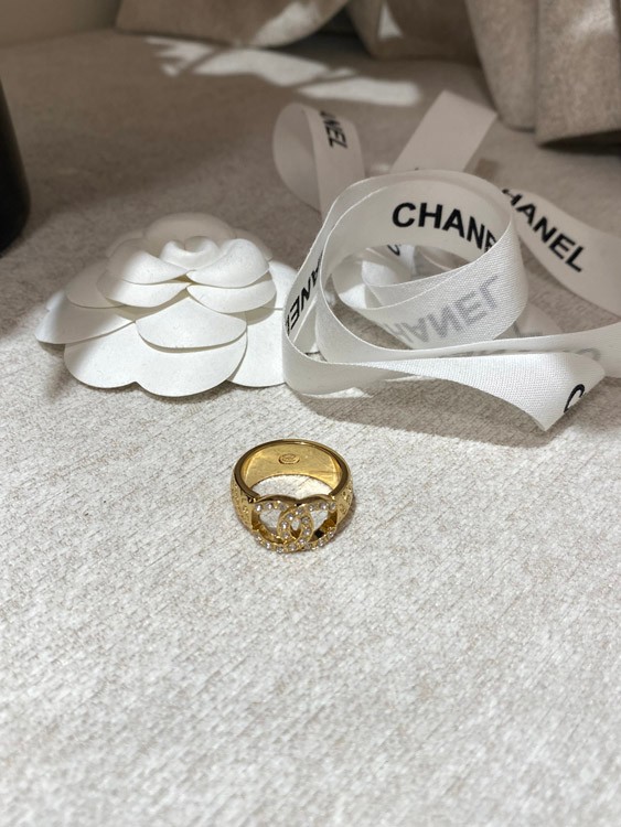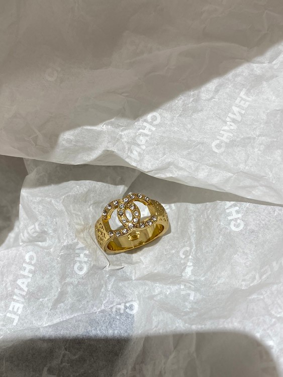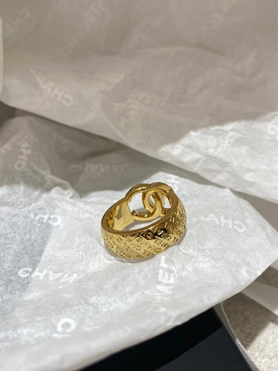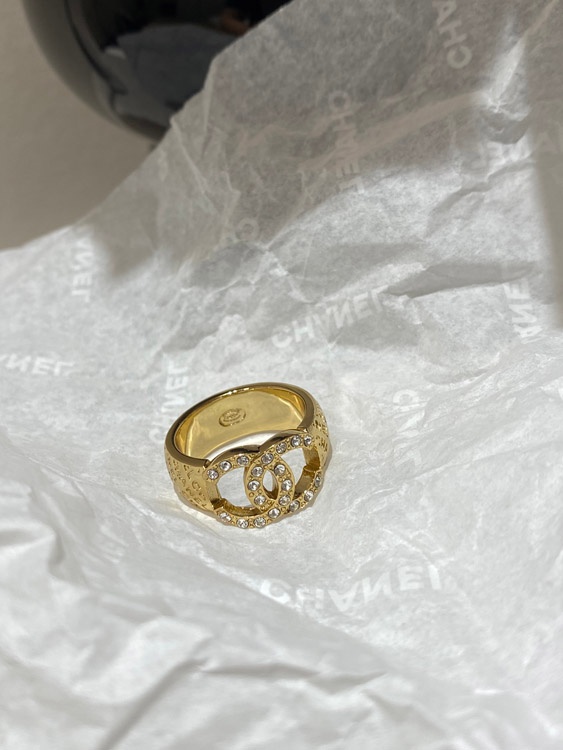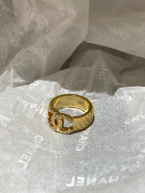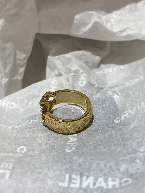 Home > Chanel gold letter embossed double C diamond double-sided wearable ring-3591
