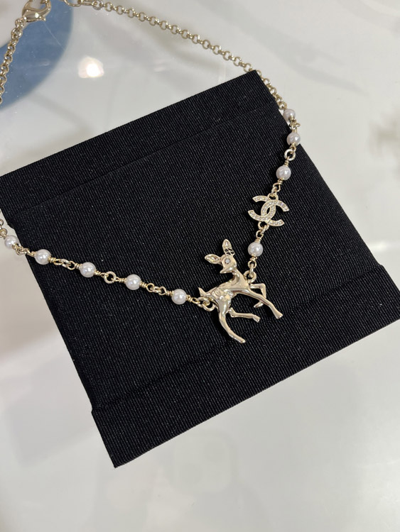 Chanel Golden Deer Full Diamond Double C Pearl Necklace-3749