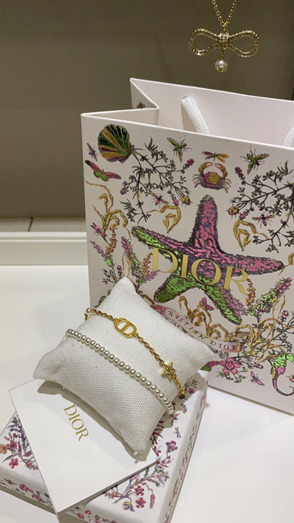 Dior gold diamond star pearl chain double bracelet-3704