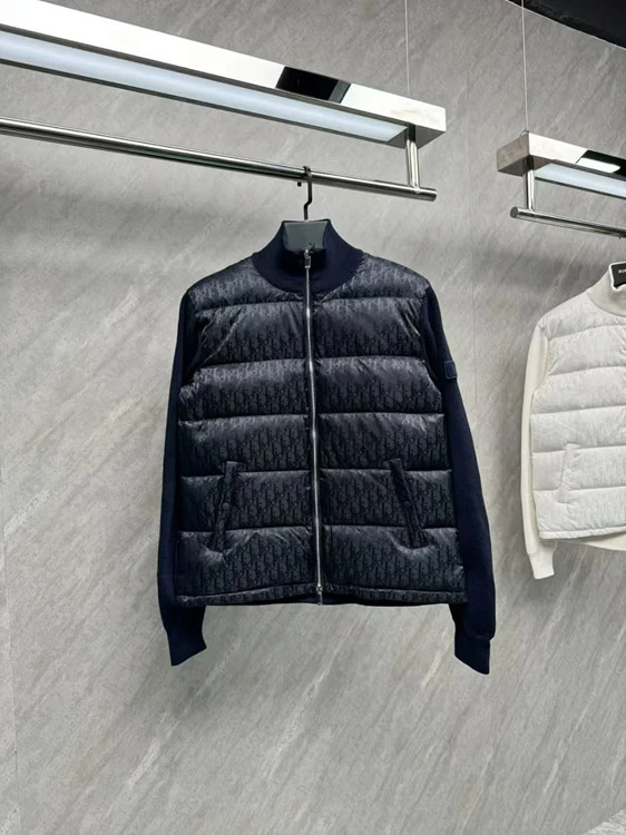 DIOR Oblique Print Solid Color Zipper Stand Collar Short Long Sleeve Down Jacket-4258
