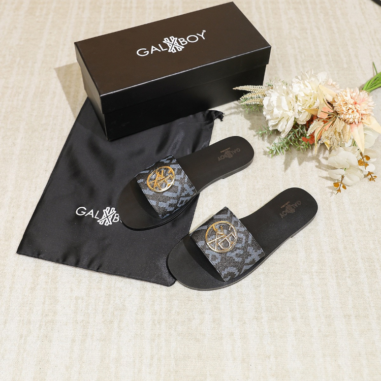 GalxBoy Plus Size Flat Sandals with Metal Buckle-5645