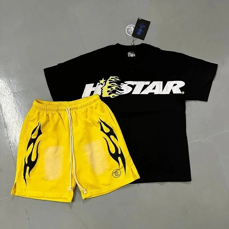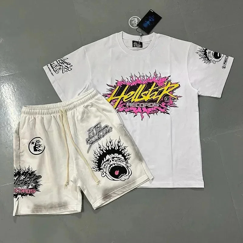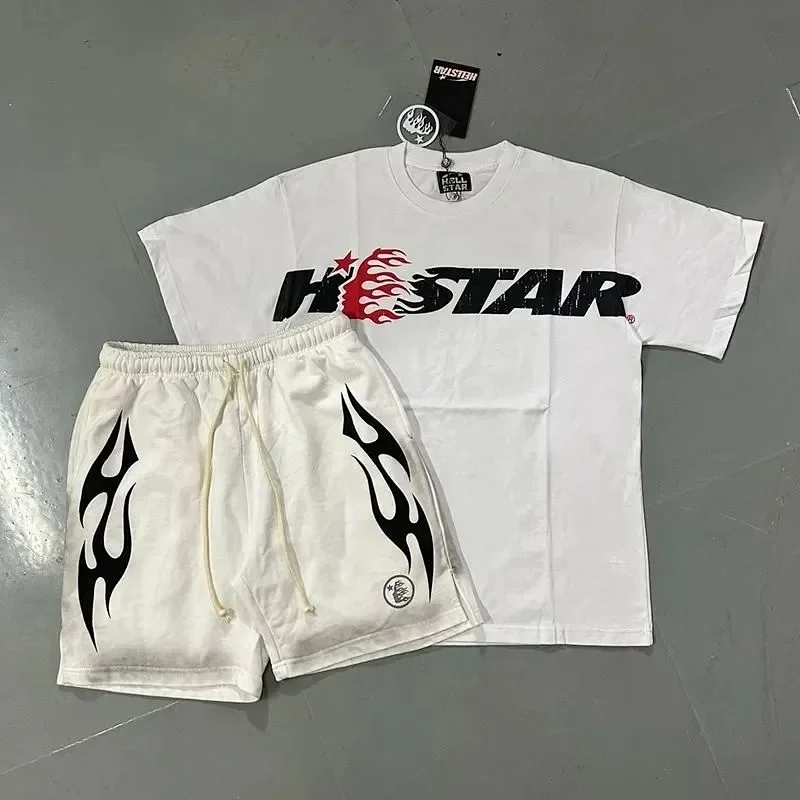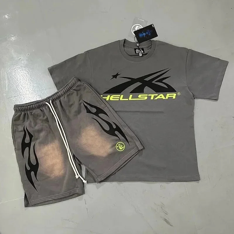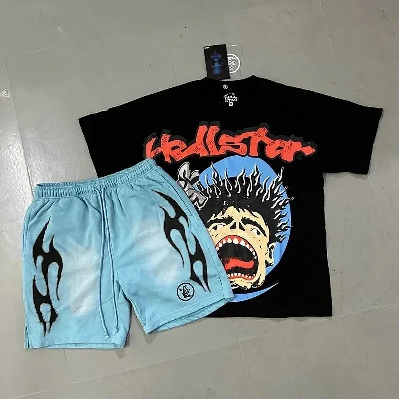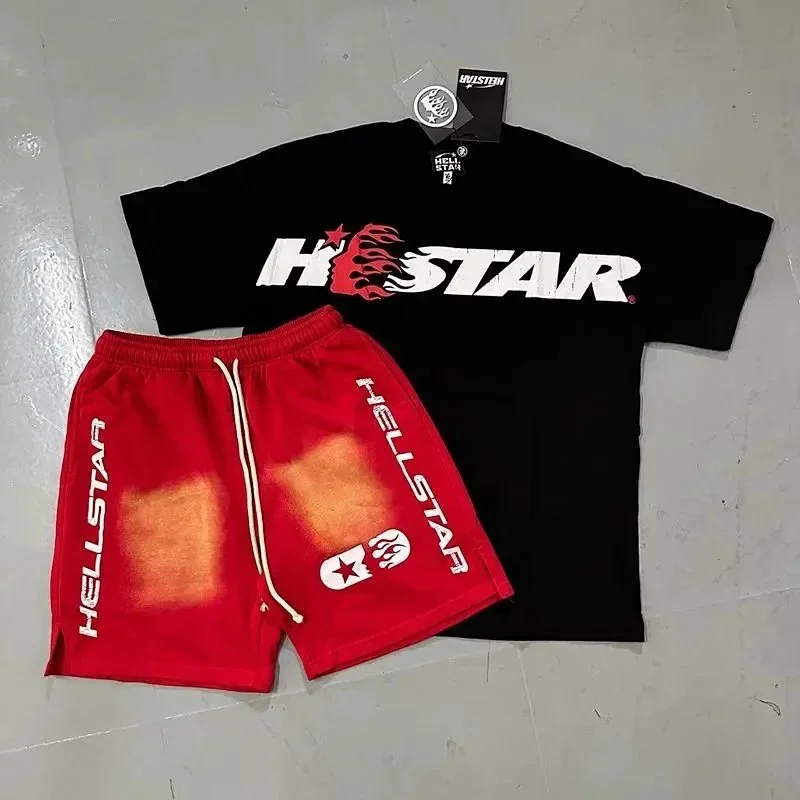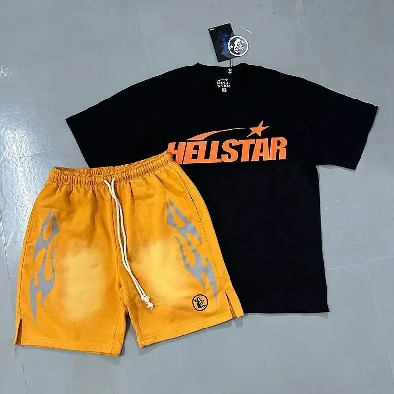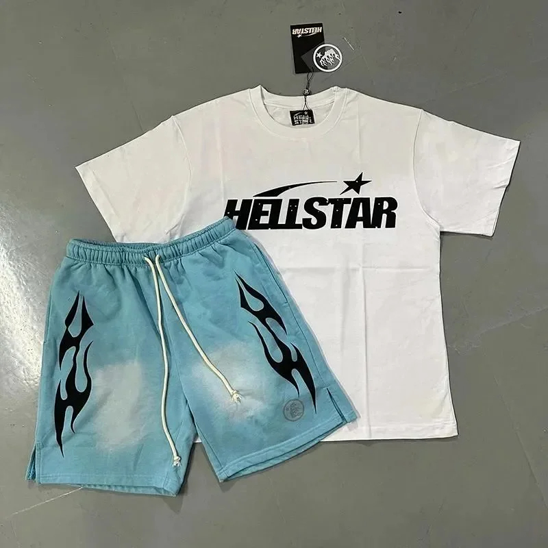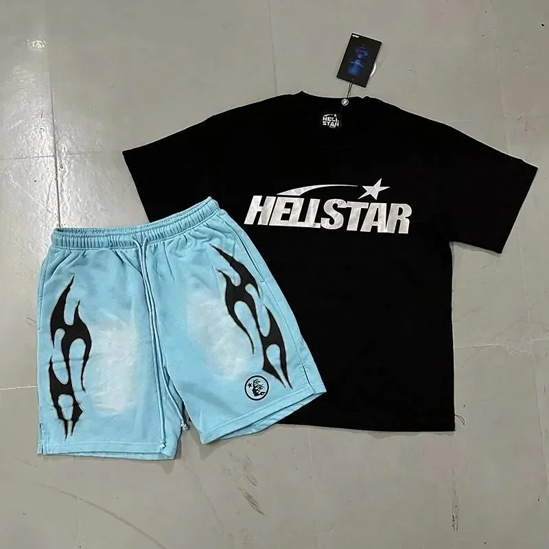 Hellstar Letter Logo Printed Round Neck Short Sleeve T-Shirt Set-2790