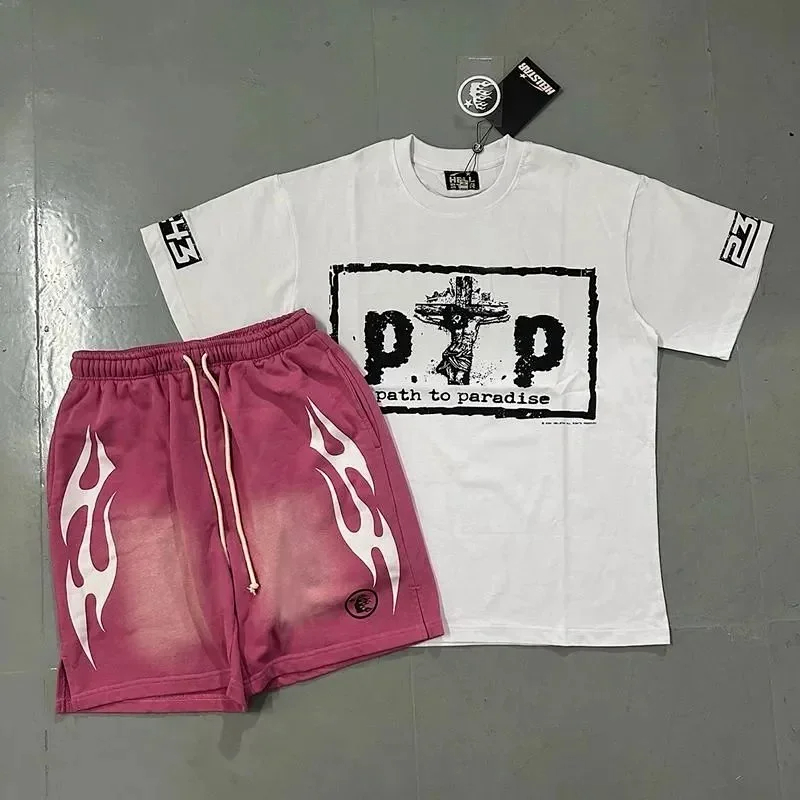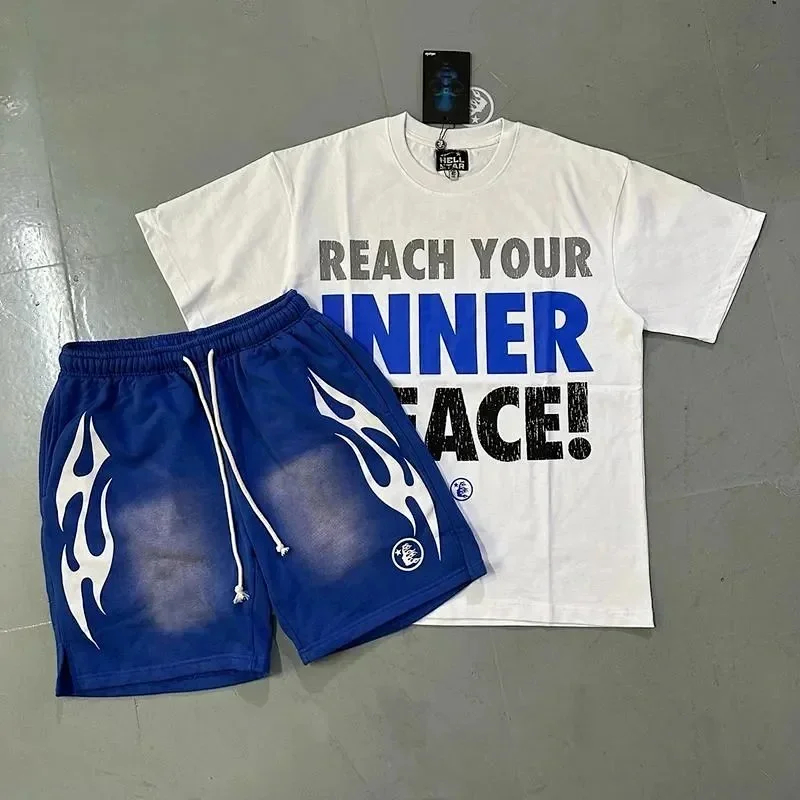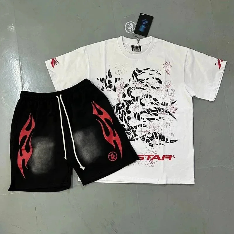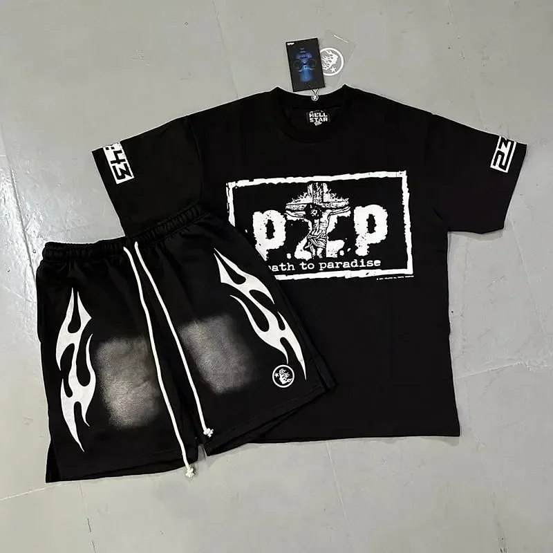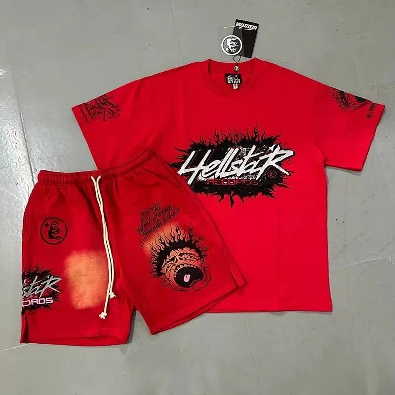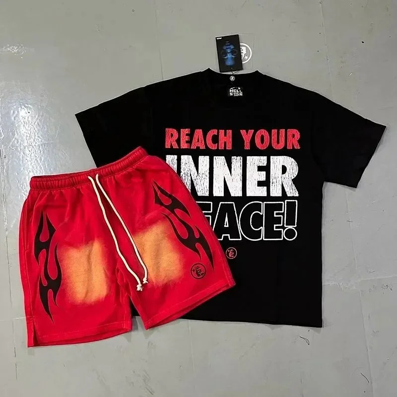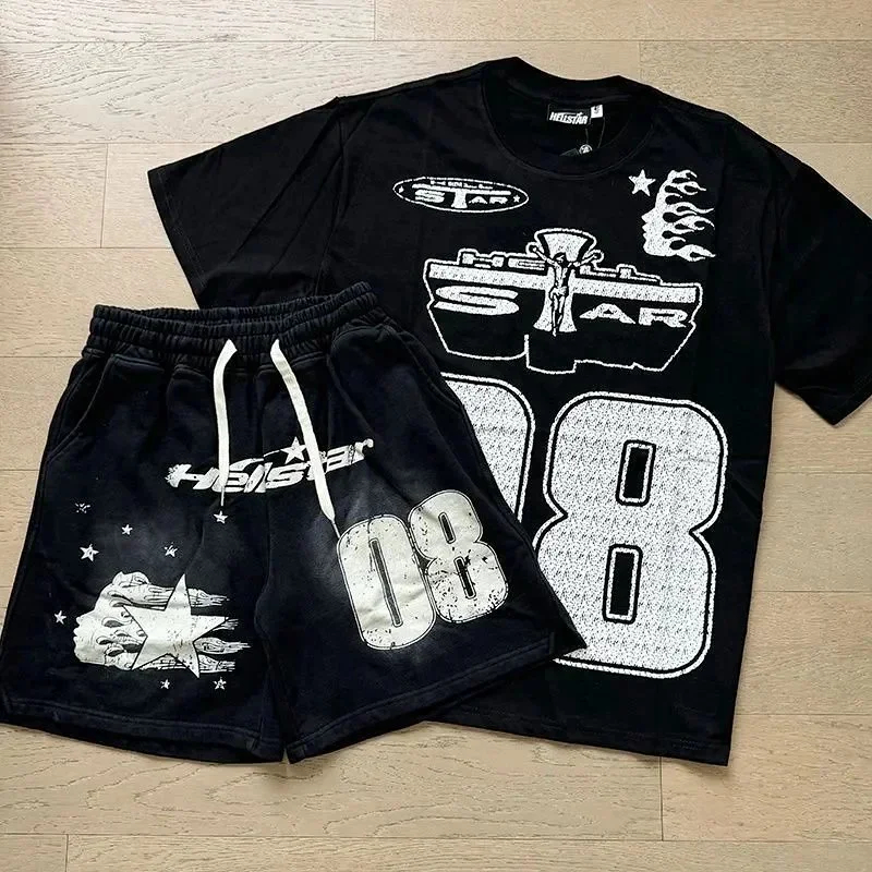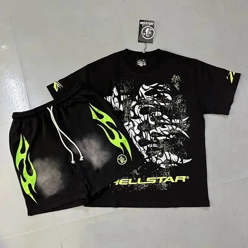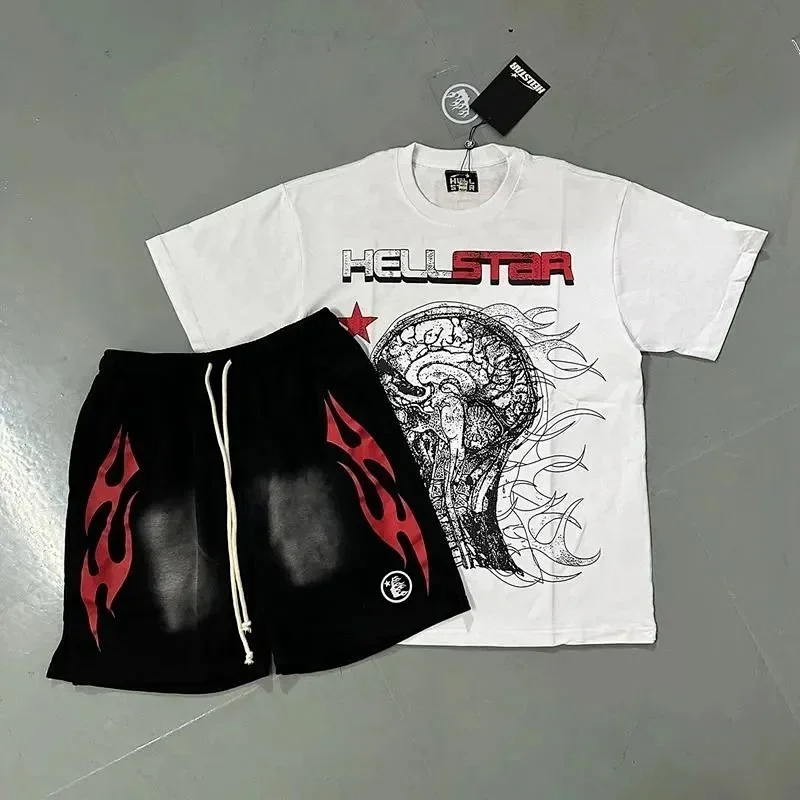 Hellstar Letter Logo Printed Round Neck Short Sleeve T-Shirt Set-2790