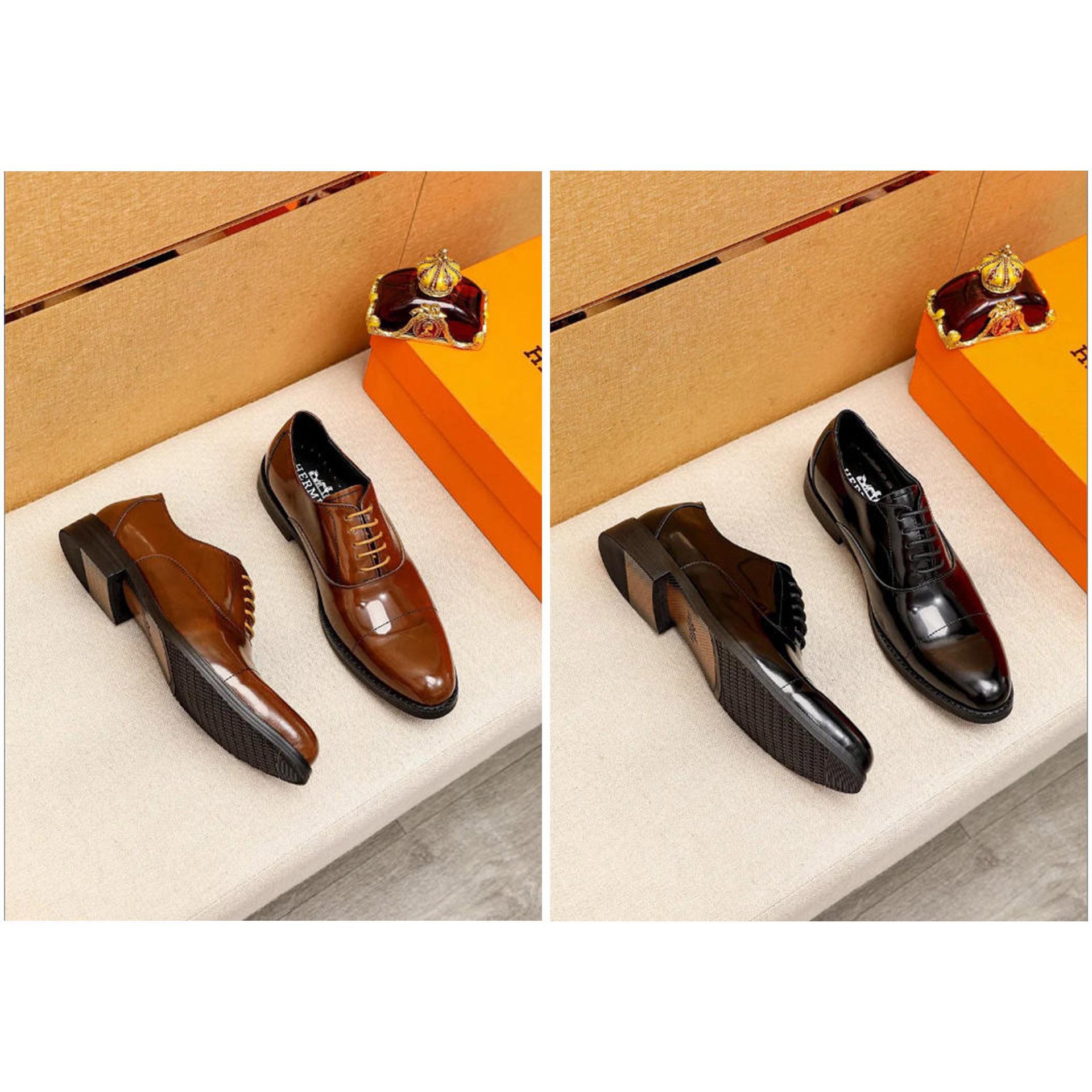 Hermès new classic calfskin lace-up business shoes-5507