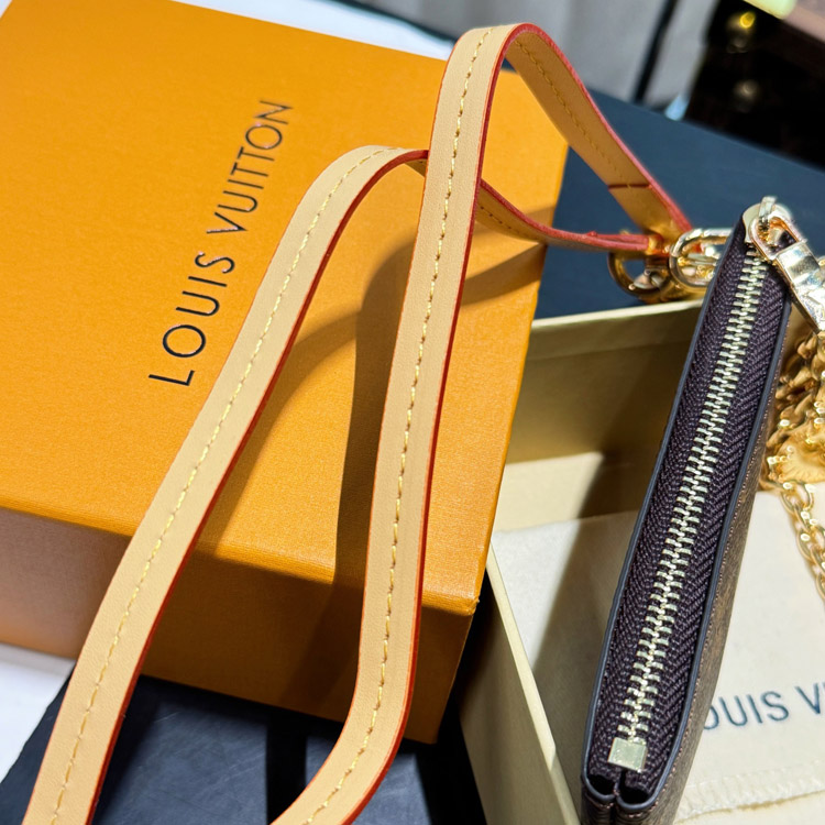Home > Louis Vuitton LV brown old flower canvas chain key bag zipper coin-4049