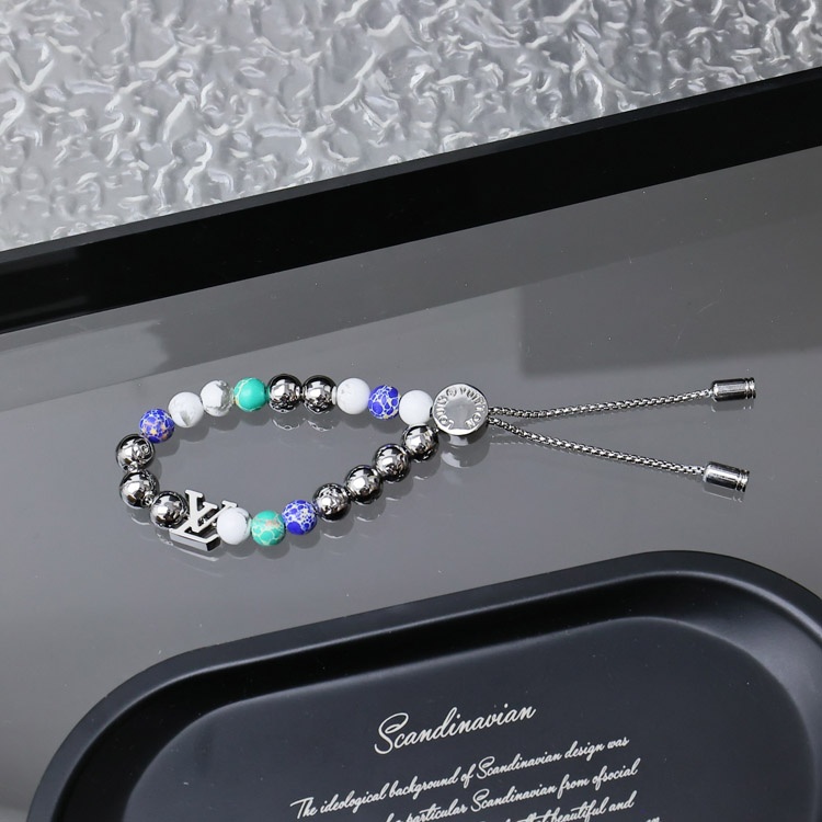 Louis Vuitton LV colorful beads letters stitching floral bracelet with metal chain-3557