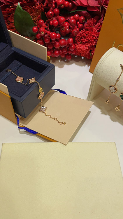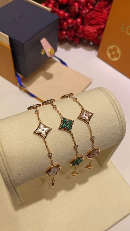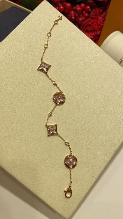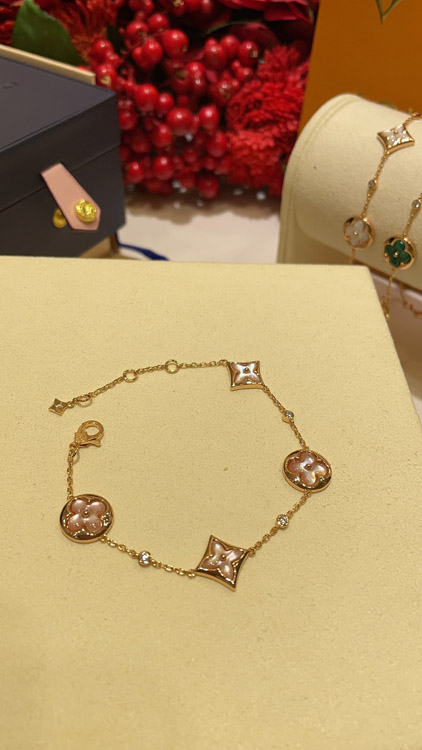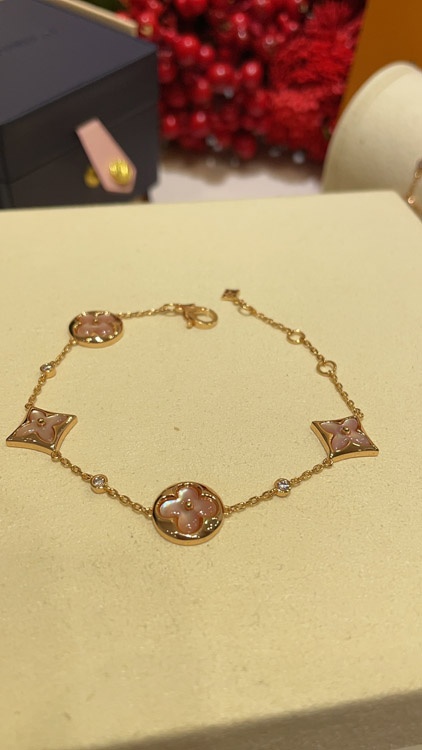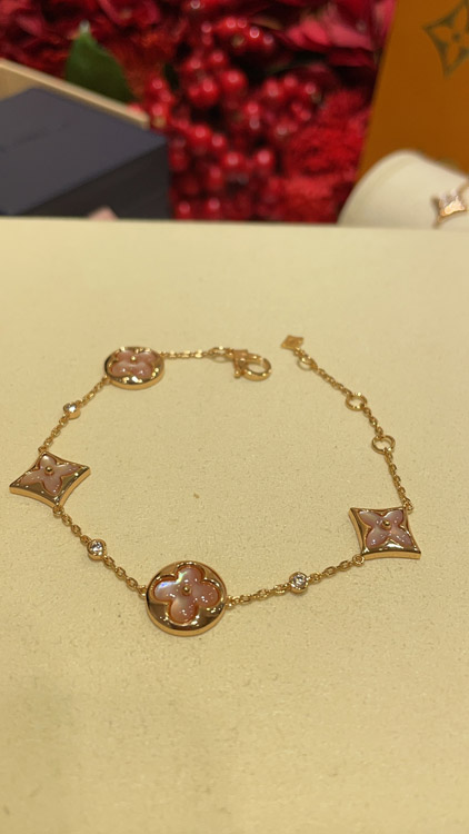 Louis Vuitton LV Pink Mother-of-Pearl Floral Four-Leaf Clover Rose Gold Bracelet-3728