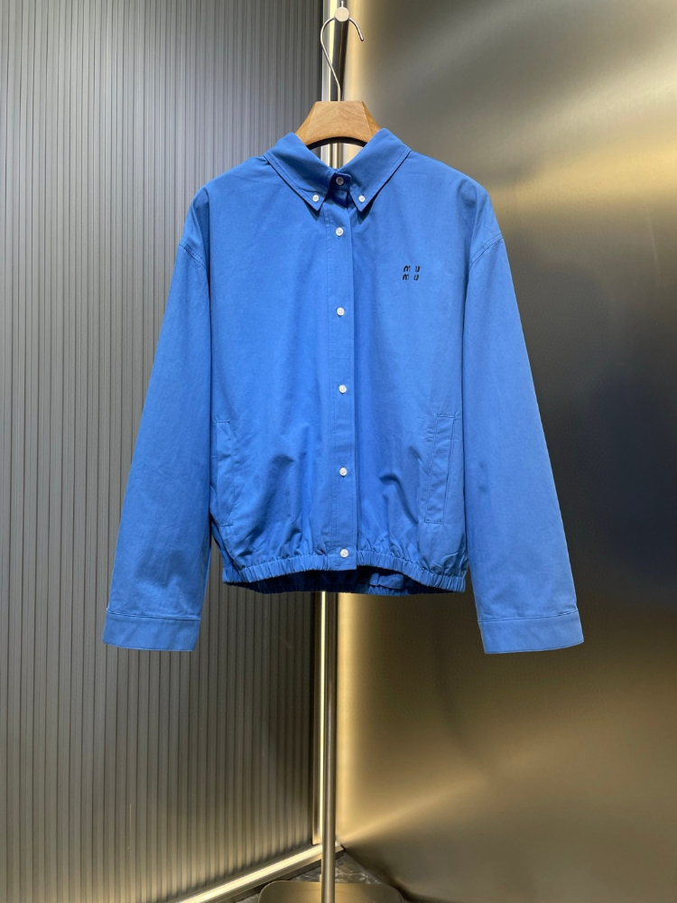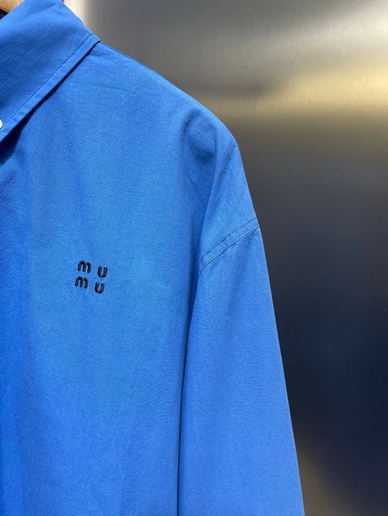 Miu Miu letter embroidered blue casual shirt jacket-5485