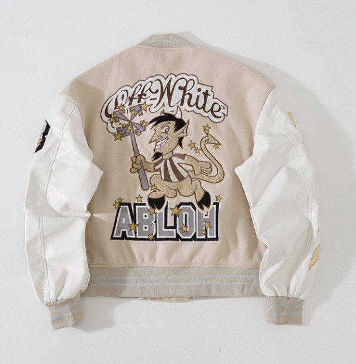 OFF-WHITE Embroidered Pattern Single-Breasted Baseball Jacket-4829
