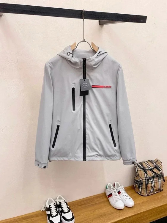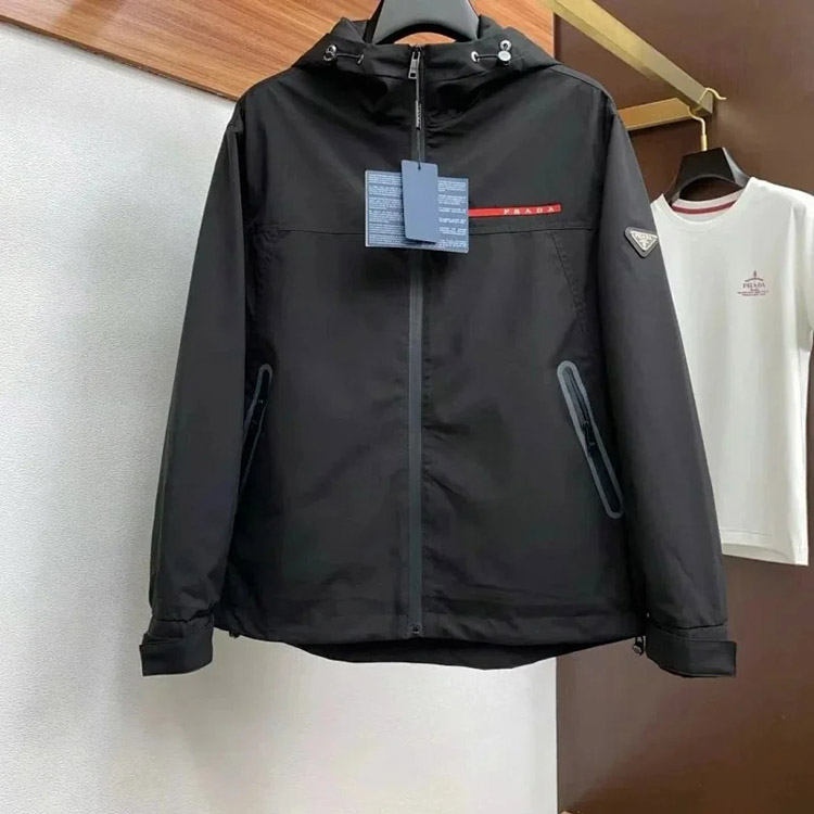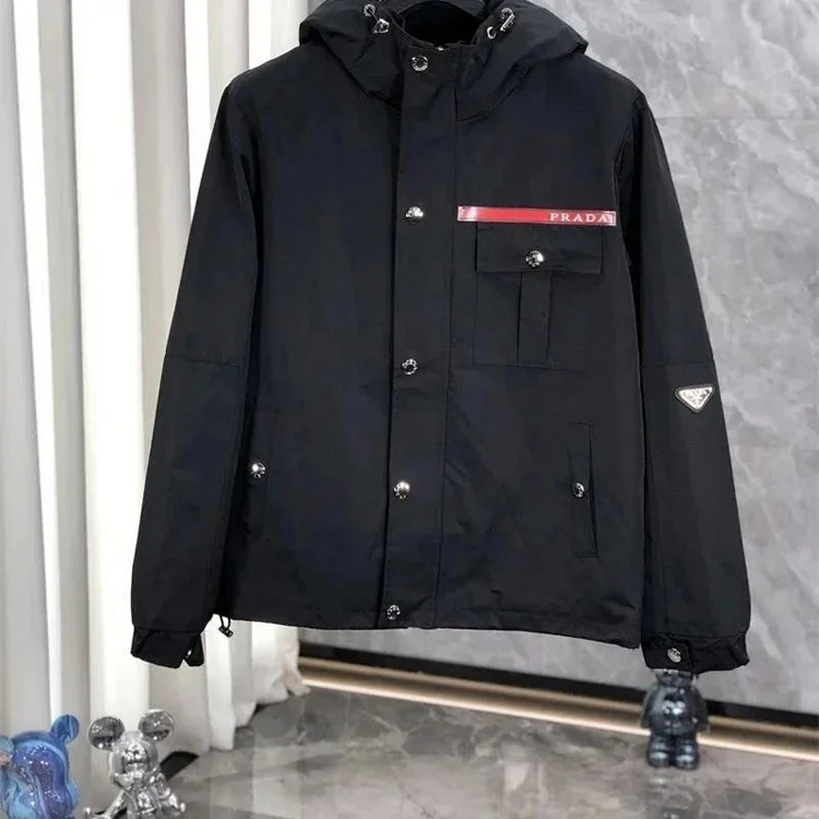 PRADA Prada Re-Nylon SS22 Logo solid color hooded waist jacket-4321