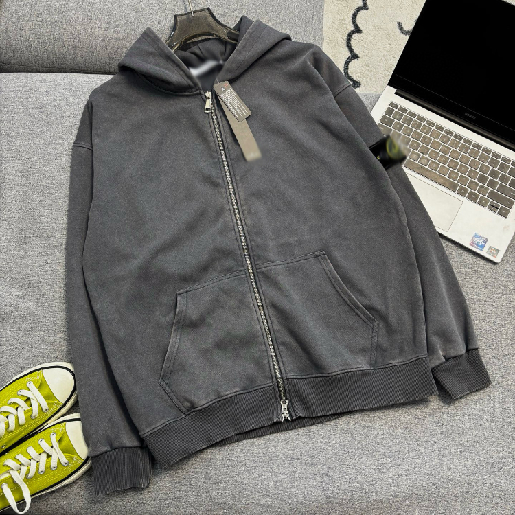 Stone Island washed and distressed zip-up hooded sweatshirt-5231