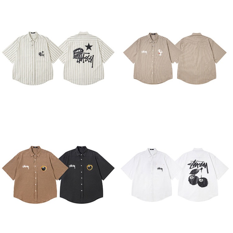 Home > Stussy new loose-fitting plaid preppy style shirt-5276
