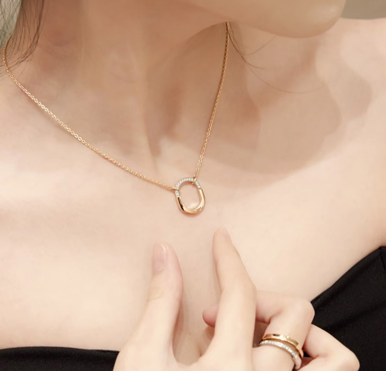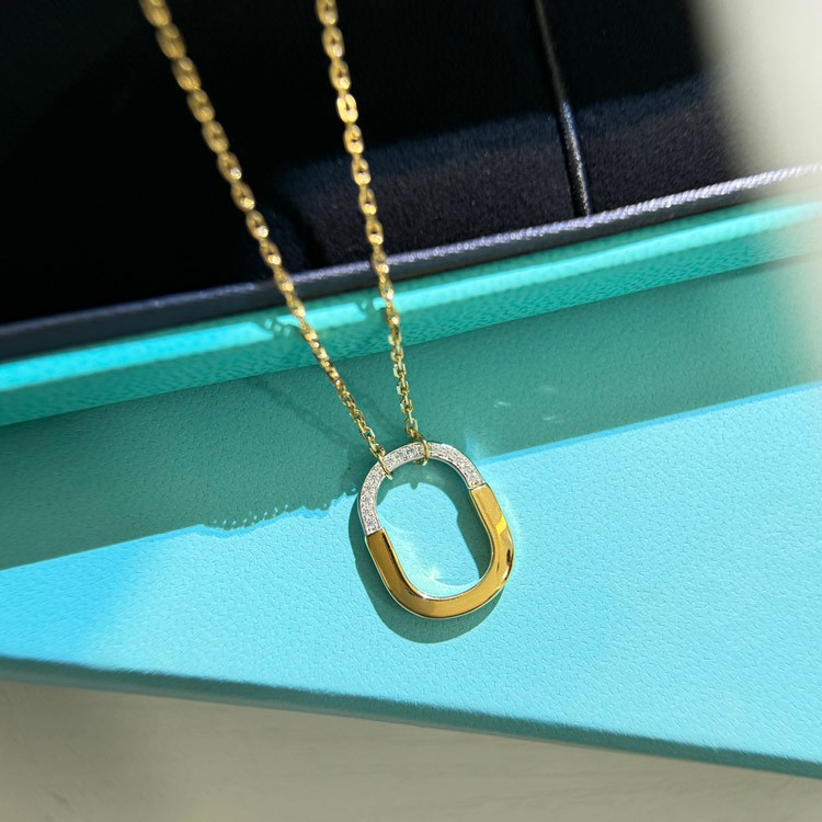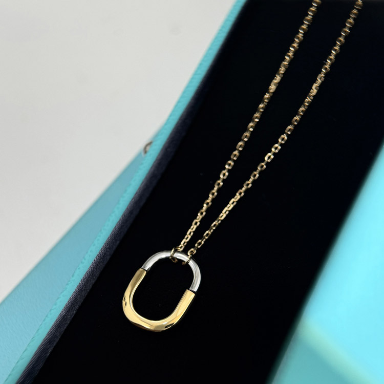 Tiffany mini U-shaped lock half diamond two-tone necklace-3962