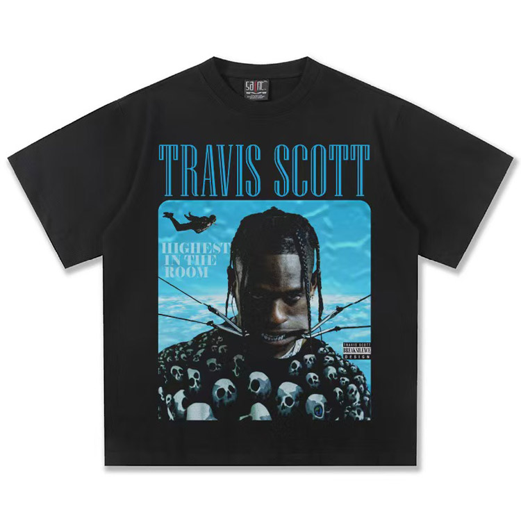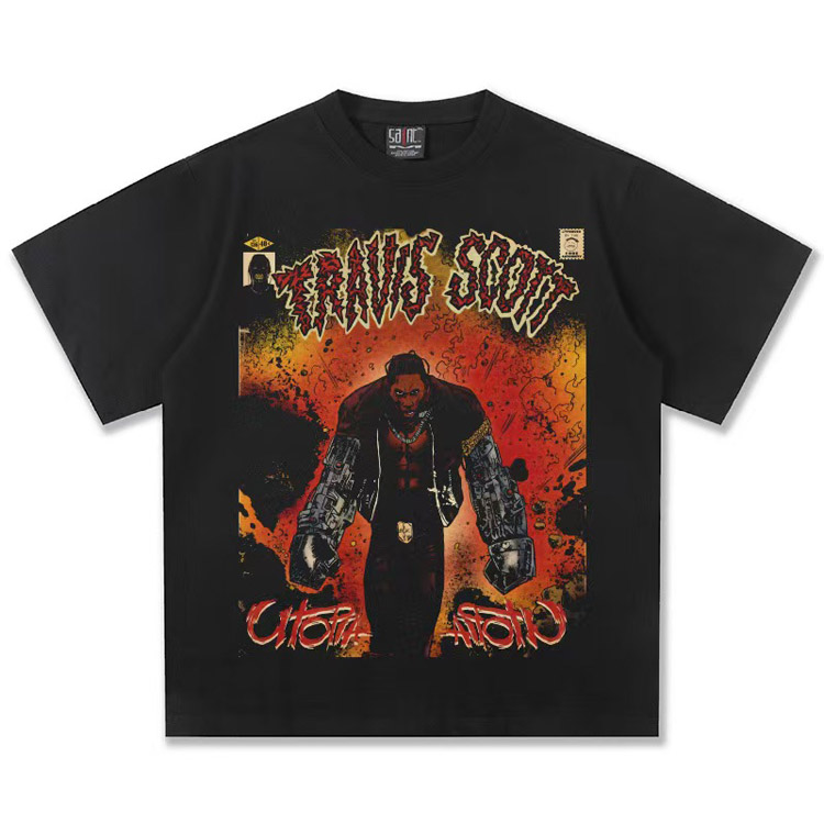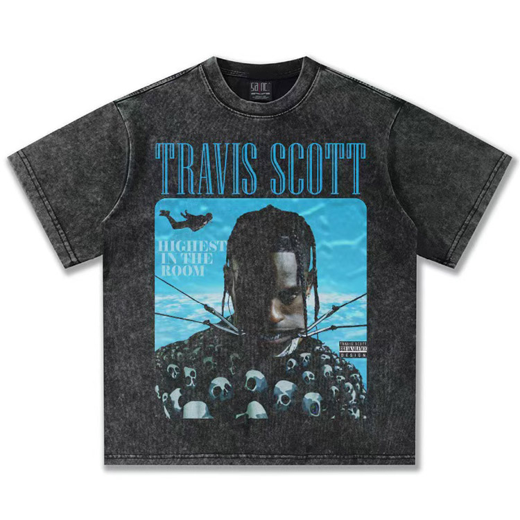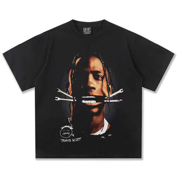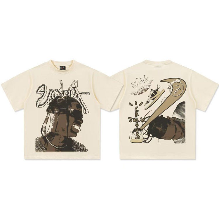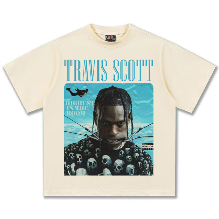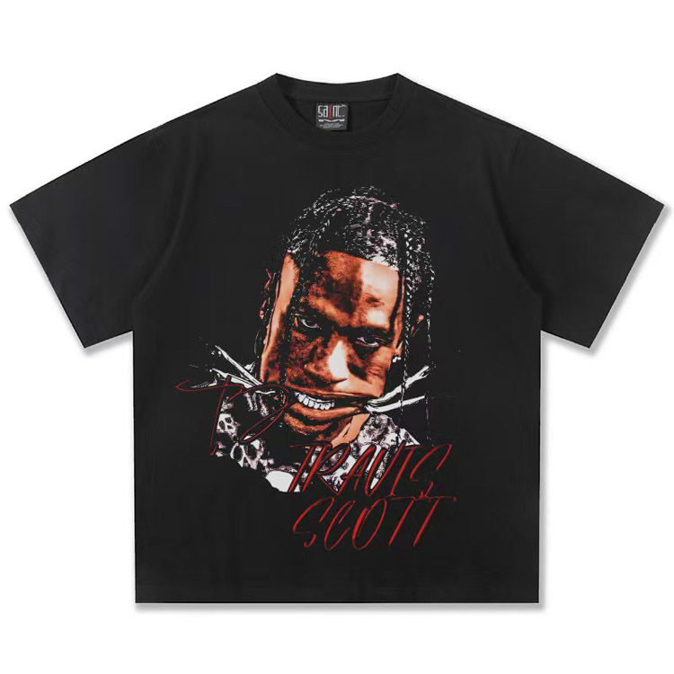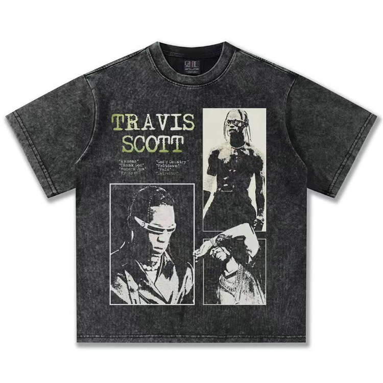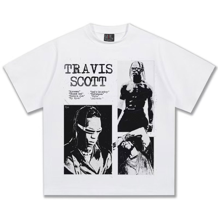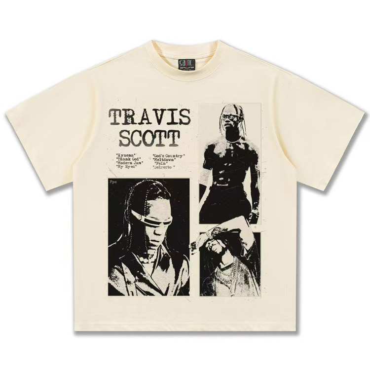 Travis Scott Vintage Pure Cotton Double-Yarn Short-Sleeved T-shirt-5097