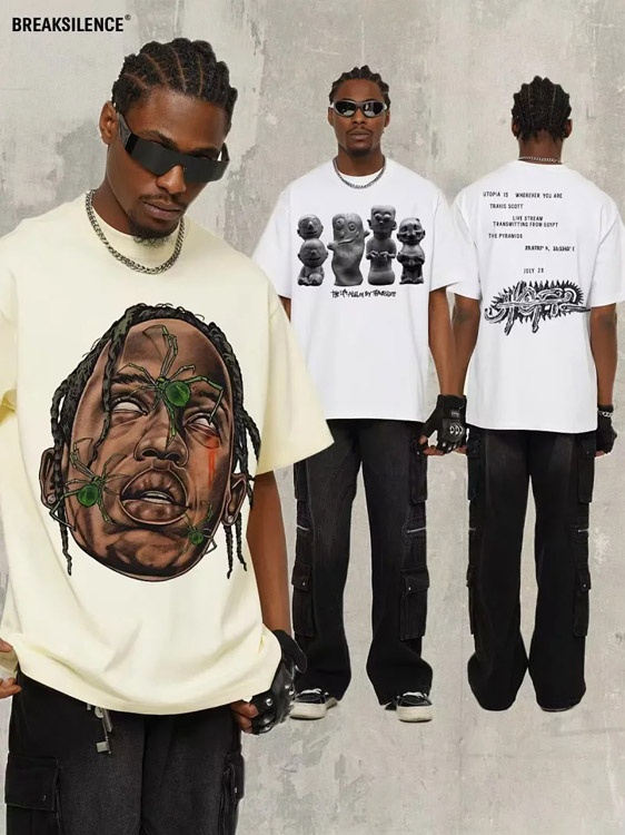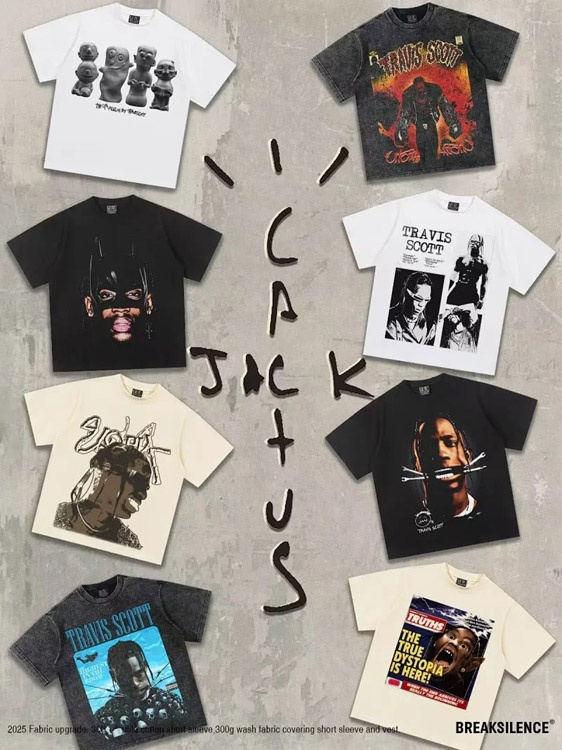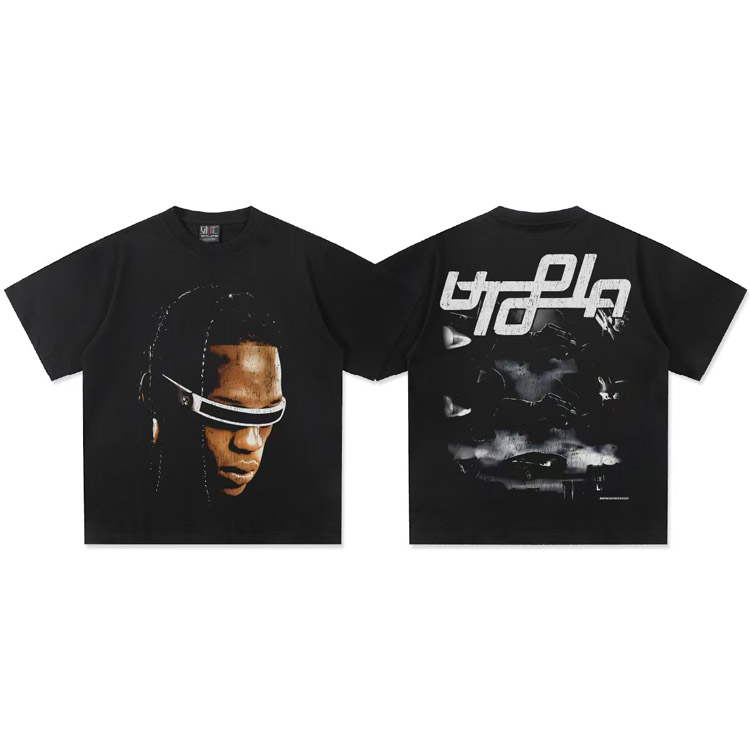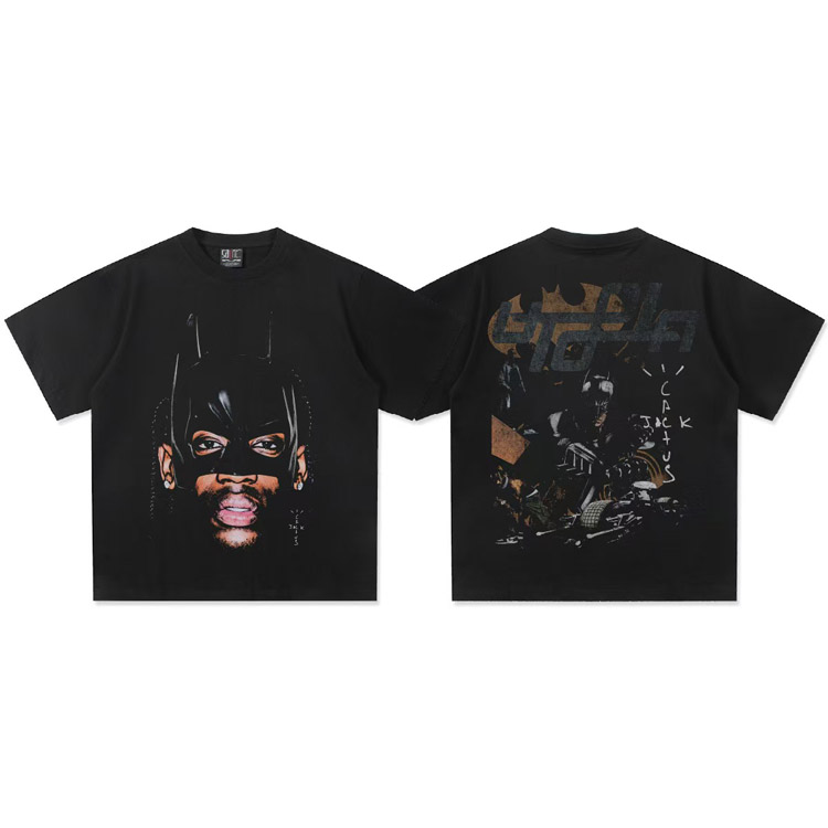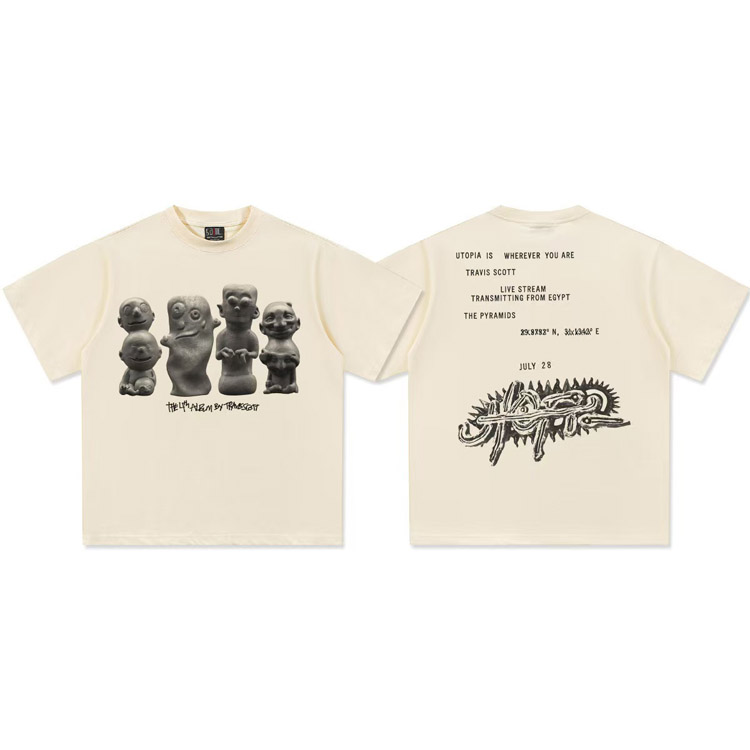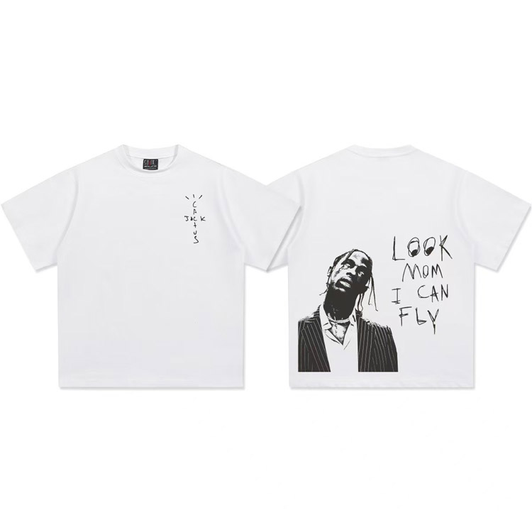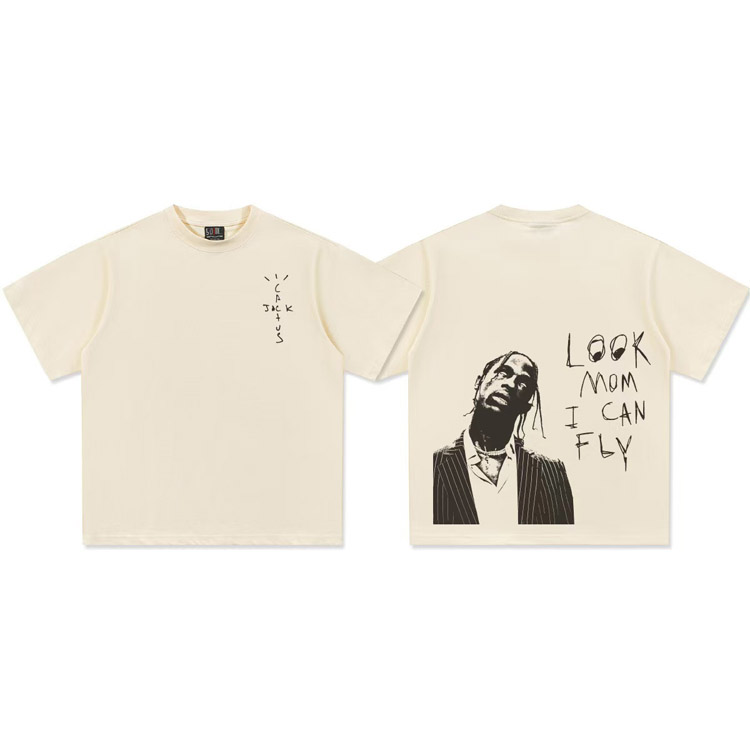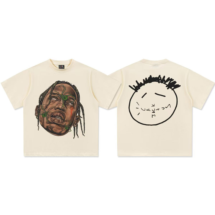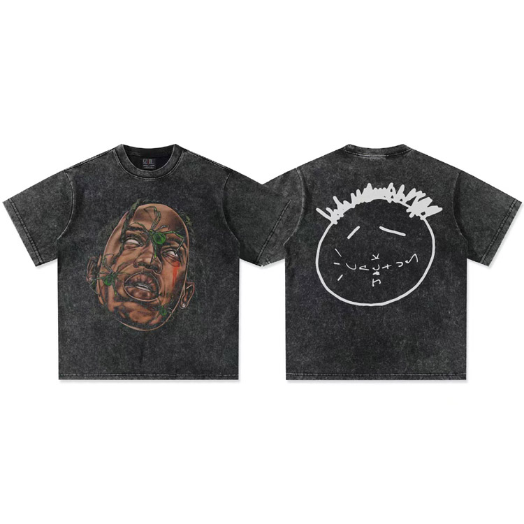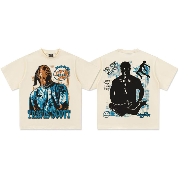 Travis Scott Vintage Pure Cotton Double-Yarn Short-Sleeved T-shirt-5097