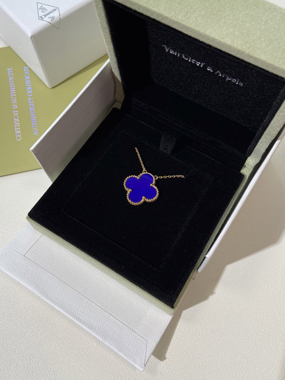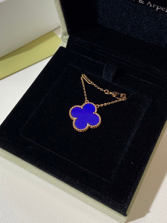 Home > Van Cleef & Arpels four-leaf clover gold blue obsidian wide necklace-3791
