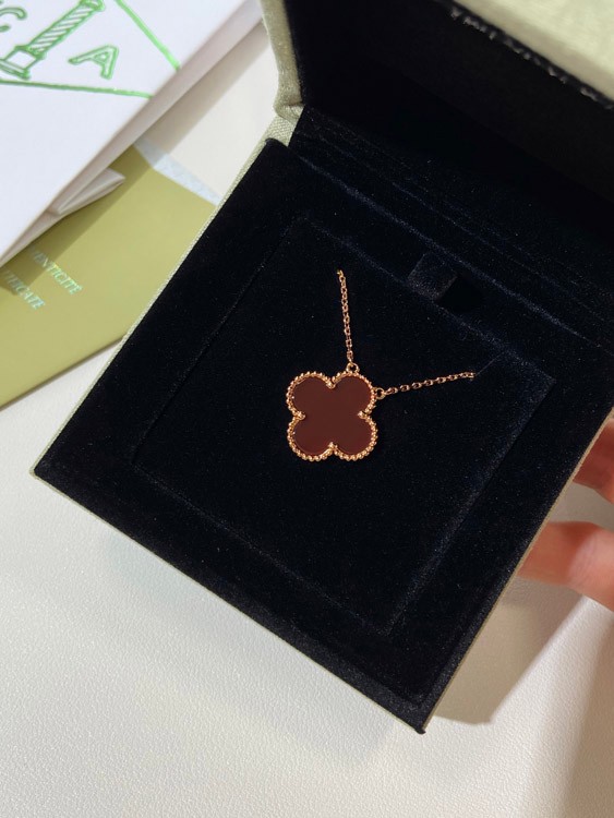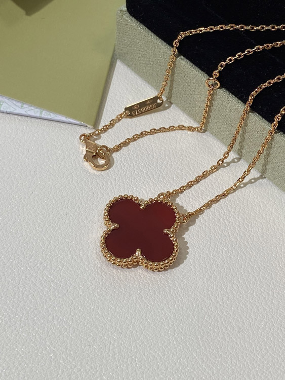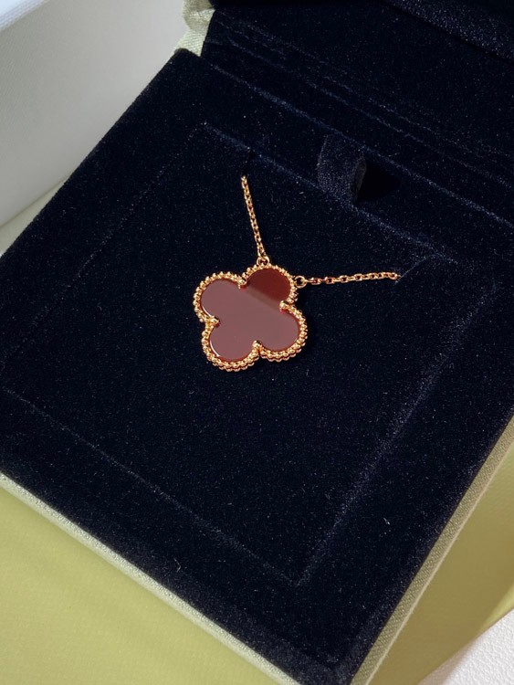 Van Cleef & Arpels four-leaf clover gold red obsidian wide necklace-3790