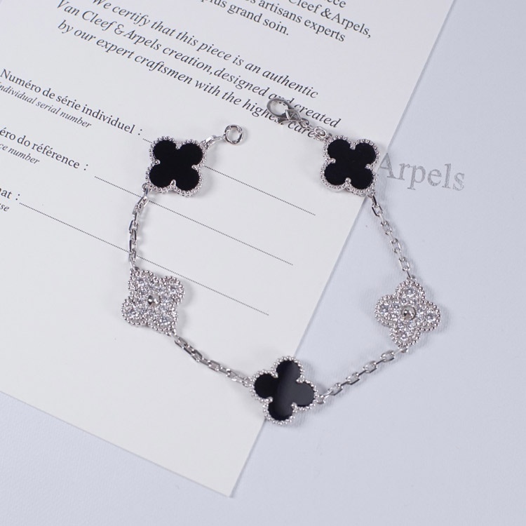 Van Cleef & Arpels inlaid diamond malachite green flower white and black five flower bracelet-3699