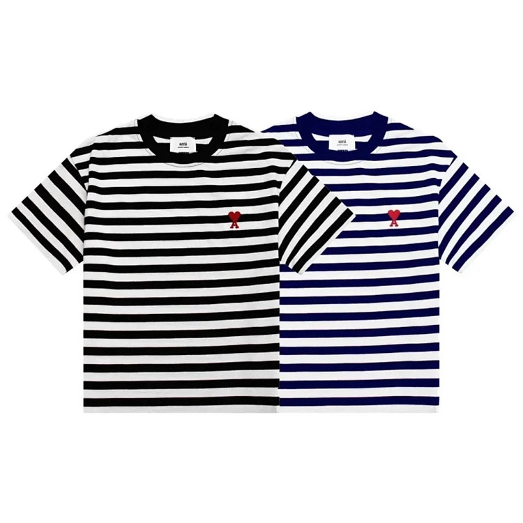 AMIPARIS new collection: striped T-shirt with heart embroidery-5198