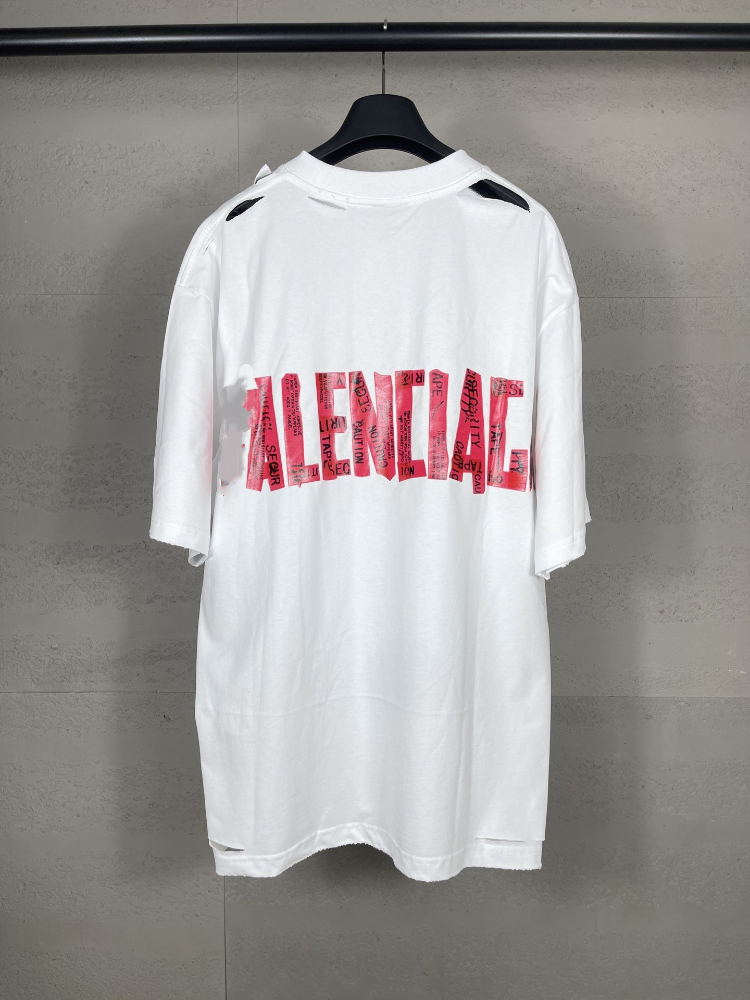 Balenciaga new collection distressed and faded loose-fitting short-sleeved T-shirt with print-5335