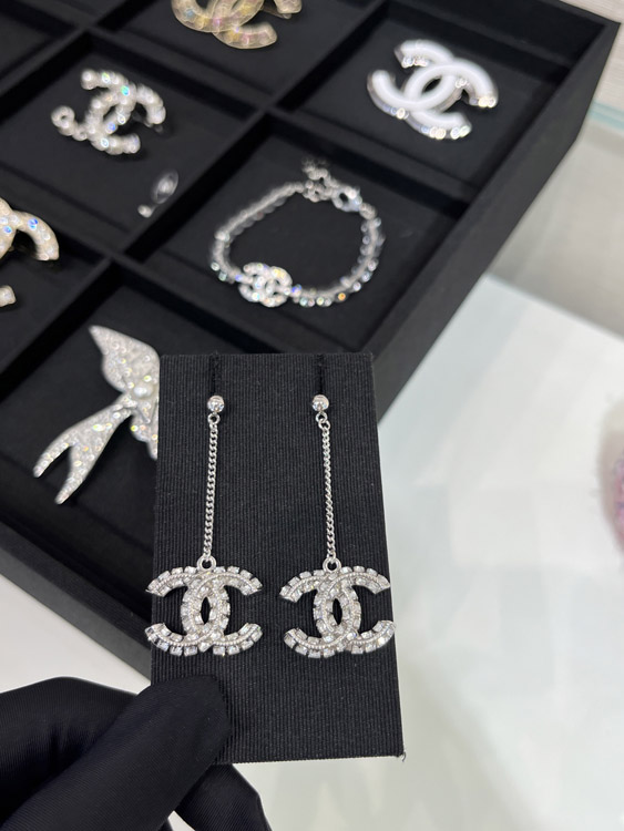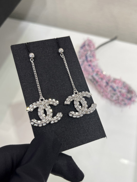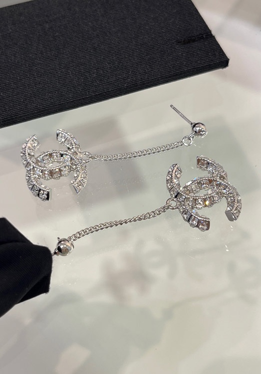 Celine double-sided diamond double C pendant long chain earrings-3902