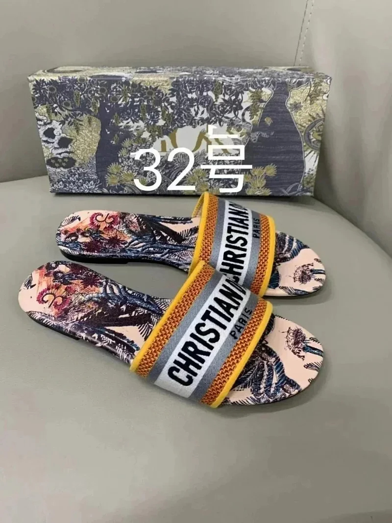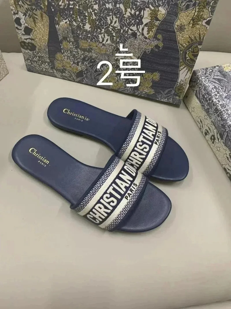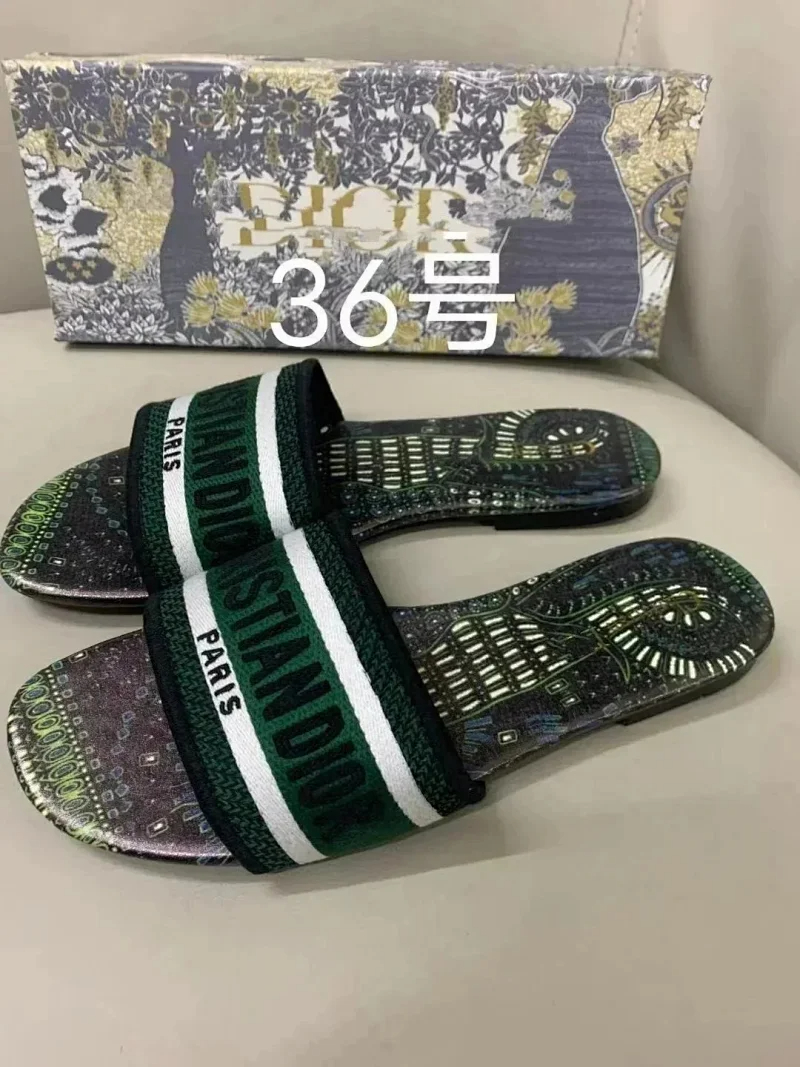 Dior 2025 new summer genuine leather letter embroidered outerwear women's slippers-2336