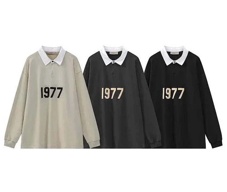 Home > ESSENTIALS Printed Polo Collar Color-Blocked Pullover Terry Sweatshirt-5214