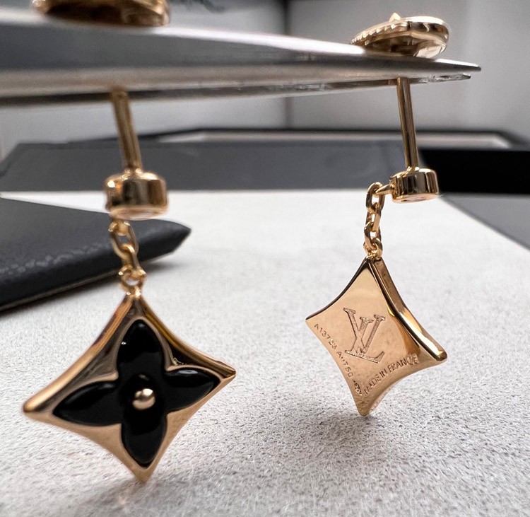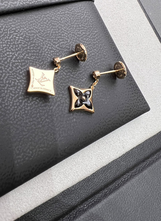 Louis Vuitton LV Black Onyx Three-Dimensional Flower Earrings-4032