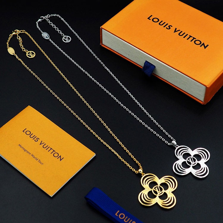 Louis Vuitton LV Floral Round Flower Hollow Metal Wire Outline Necklace-3571