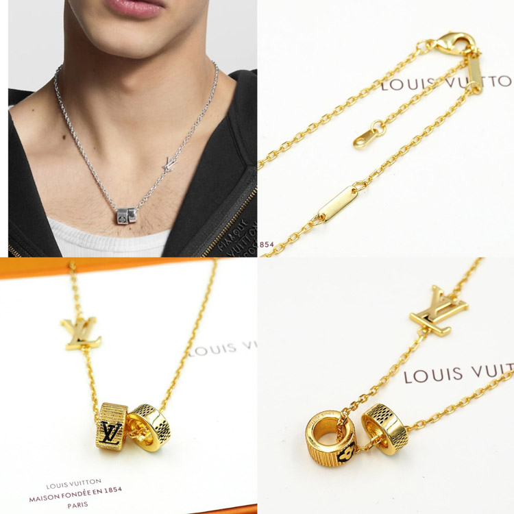 Louis Vuitton LV micro logo detail letter necklace-3913