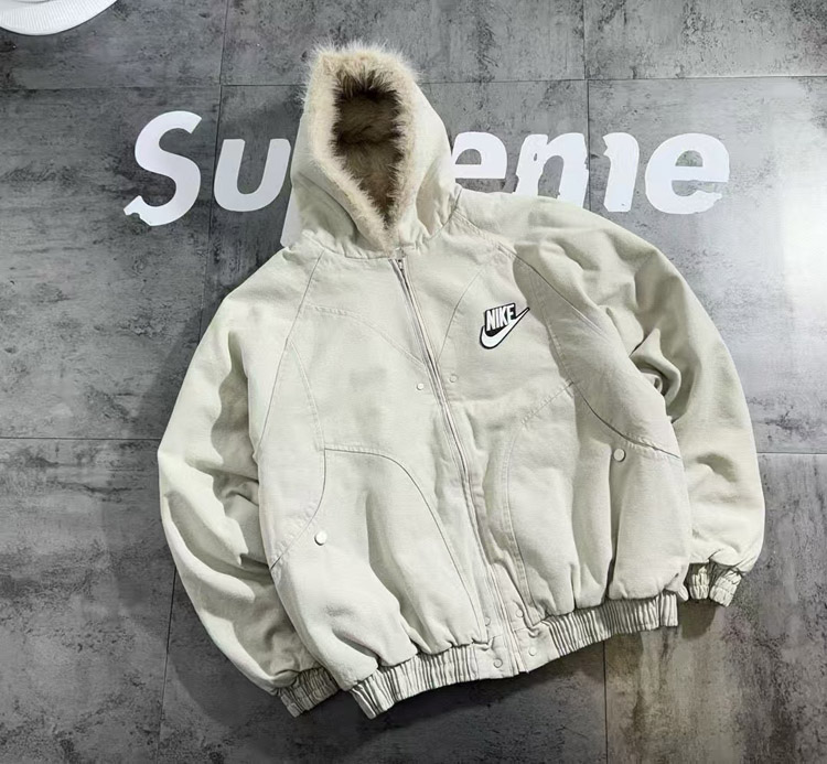 Nike new embroidered swoosh hooded fleece-lined cotton jacket-5079