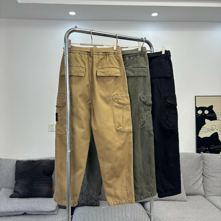 Stone Island Embroidered Loose Straight-Leg Casual Multi-Pocket Cargo Pants-5238