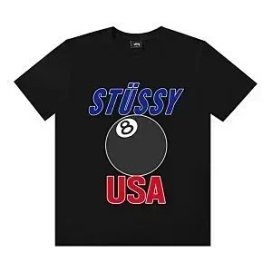 Stussy Black 8 embroidered short-sleeved polo shirt loose casual short-sleeved T-shirt-2817